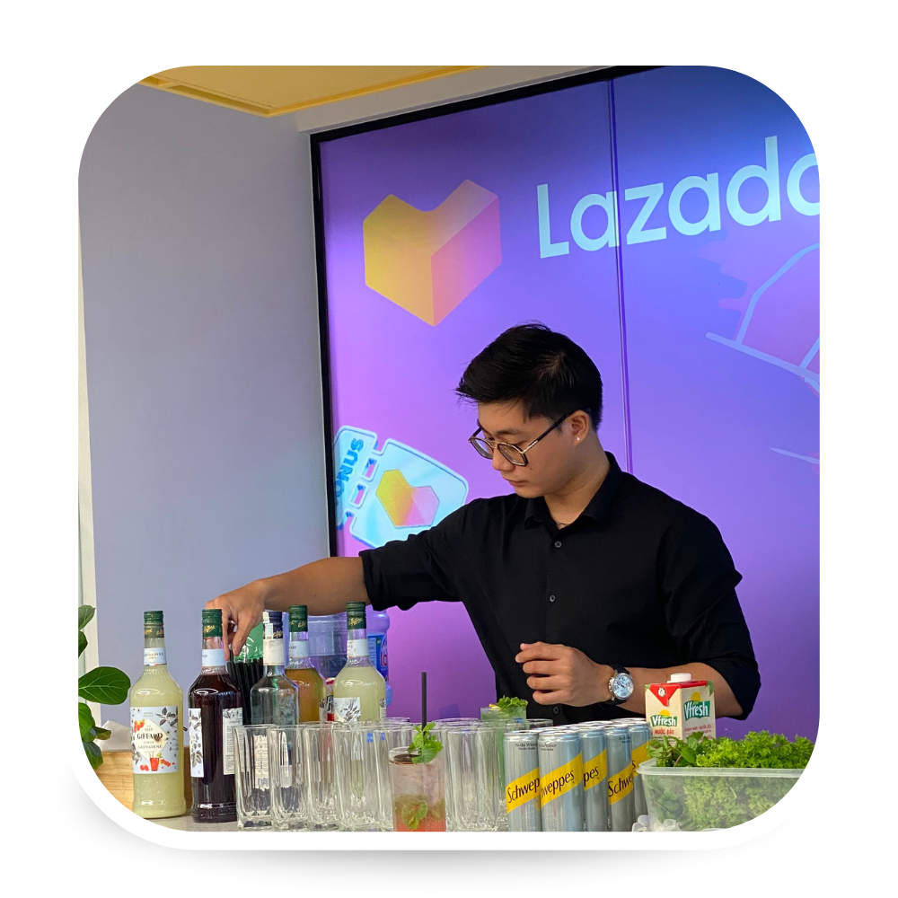 Bartender pha chế và biểu diễn trực tiếp tại chỗ, với các món cocktails và mocktails theo yêu cầu sẽ là một hoạt động ấn tượng đối với các bạn nhân sự.